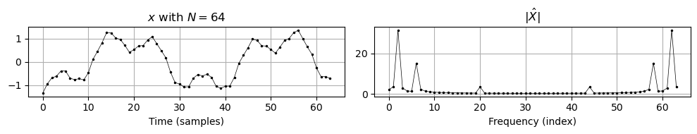 - The vector \(\hat{x}\) can be interpreted as a frequency representation of the time-domain signal \(x\).